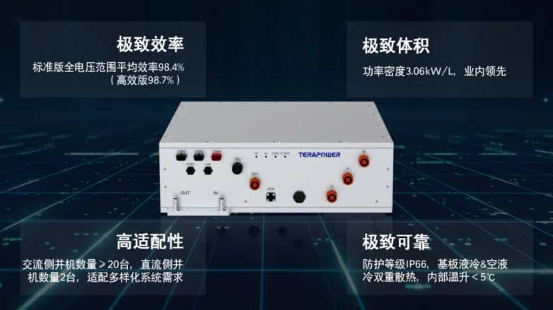 时代天源发布会上的另一款产品—— 430kW组串式液冷储能变流器,则体现了储能变流器更高效率、更强适应性的发展趋势。该产品采用三电平拓扑架构,并提供IGBT与混合SiC双版本配置,兼具极致效率与紧凑体积。其内外双重液冷设计有效提升系统散热效率与延长系统整体寿命,精准匹配了储能电芯快速迭代背景下,市场对储能变流器适配性与全生命周期价值的更高要求。