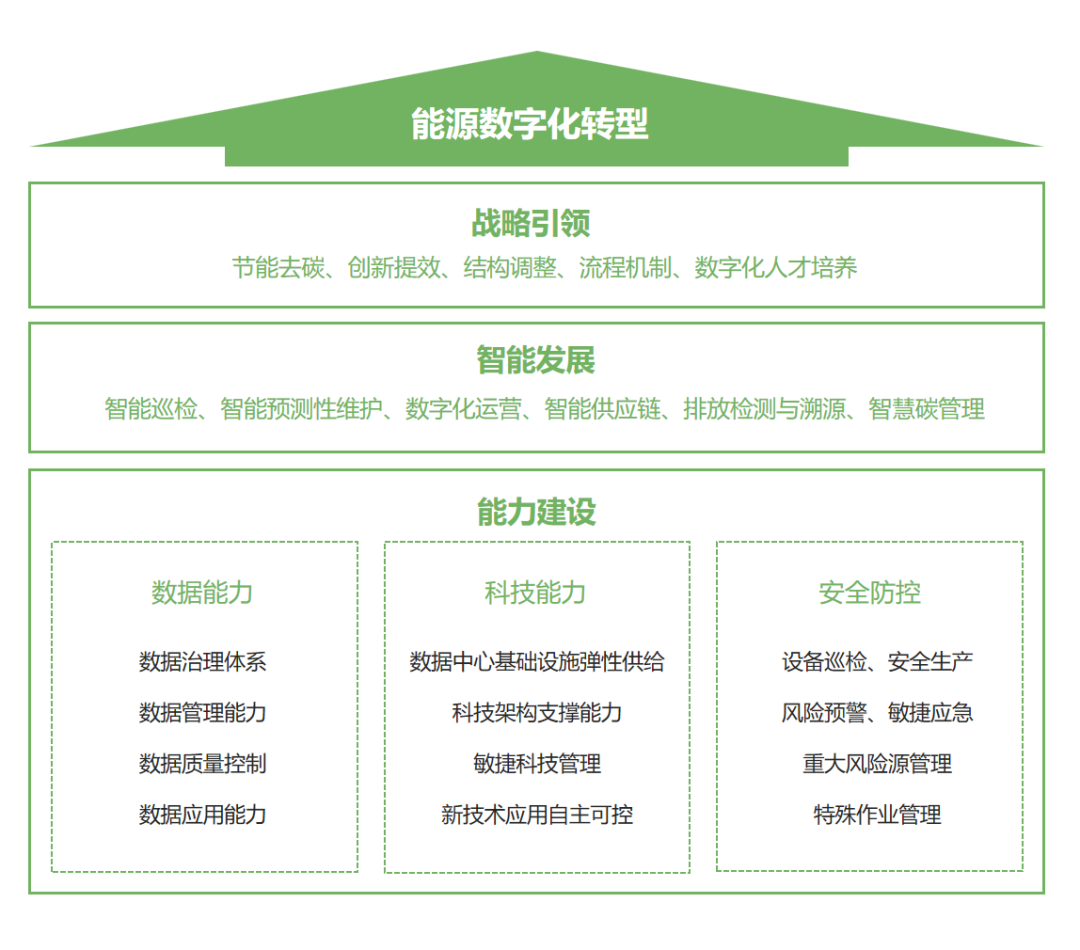 以能源安全新战略和创新驱动发展战略,聚焦保障能源安全、促进能源转型、引领能源革命和支撑“碳达峰、碳中和”目标等重大需求,坚持创新在能源发展全局中的核心地位,统筹发展与安全,以实现能源科技自立自强为重点,以完善能源科技创新体系为依托,引领清洁低碳、安全高效的能源体系建设,这些建设目标对能源行业数字化转型提出了更高的要求。